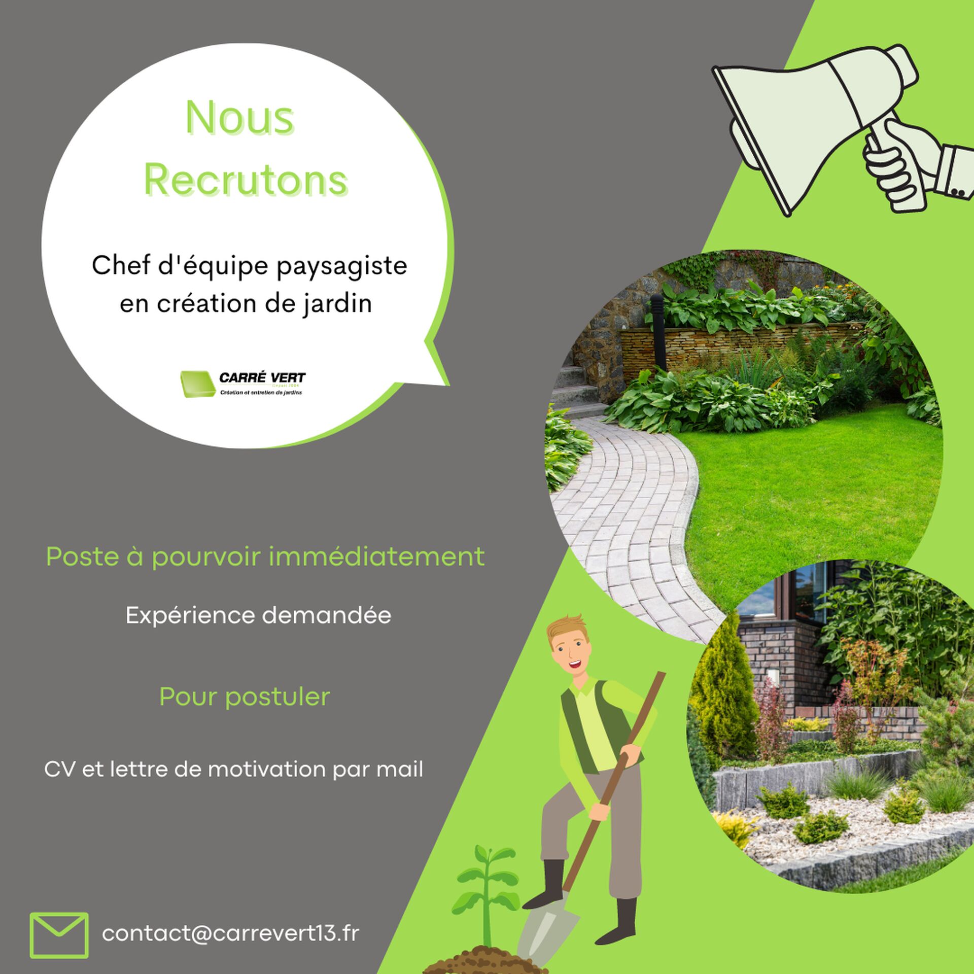 Nous recherchons activement 2 personnes pour le poste de Chef d'équipe paysagiste ayant donc de l'expérience en création de jardin et aménagement paysager.