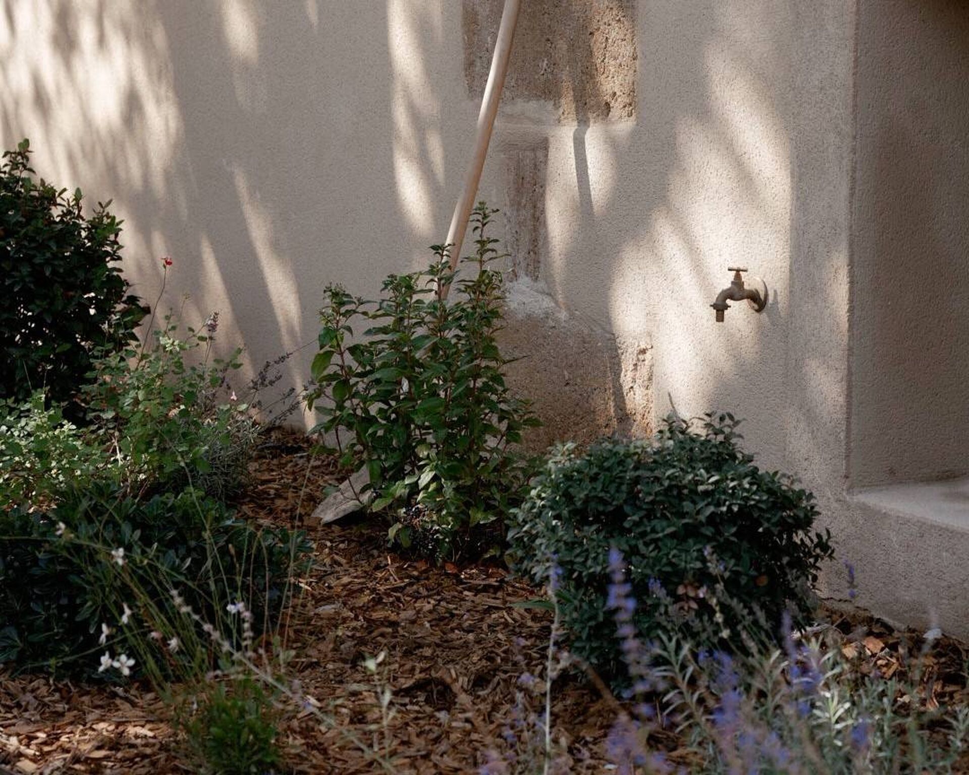Autour des zones construites, des essences méditerranéennes ont été plantées : lavandes, romarins, gauras, lauriers, cistes. Elles apportent de la texture, un intérêt saisonnier, tout en réduisant les besoins en arrosage.
